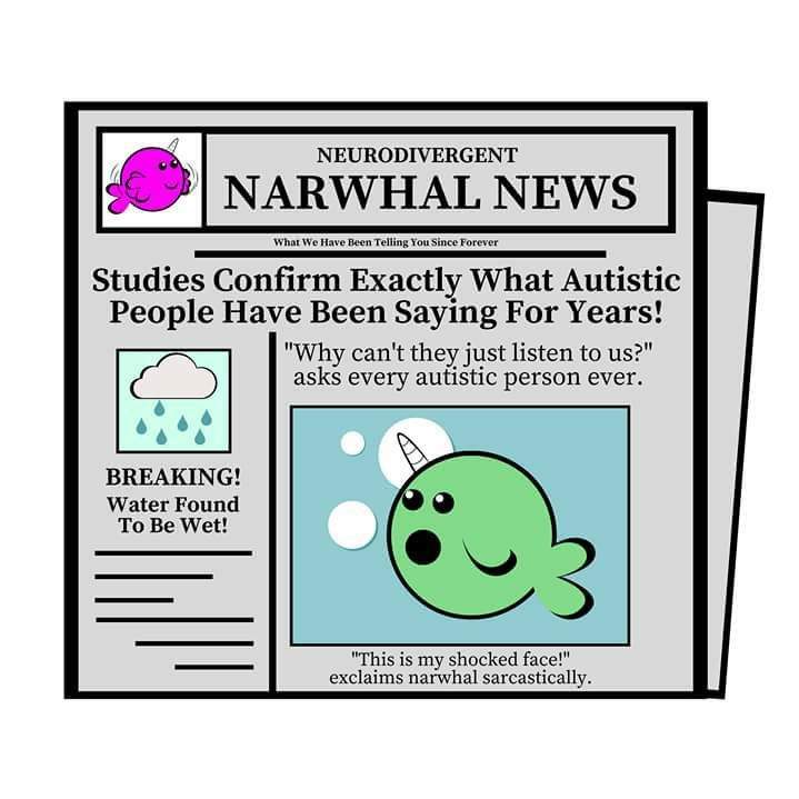 neurodiversity cartoon newspaper headline joke “Studies confirm exactly what autistic people have been saying for years!”
